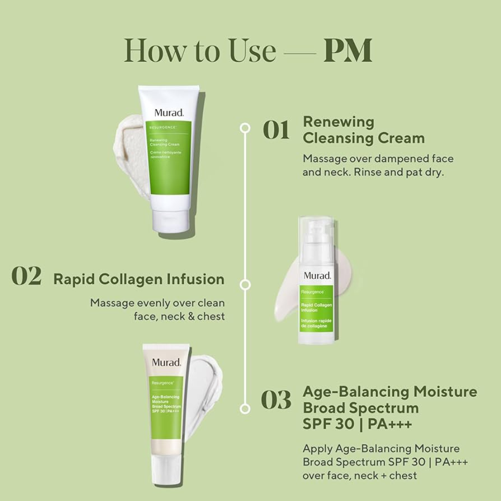 - Apply a pea-sized amount of Murad Renewing Cleansing Cream to damp skin, gently massaging in circular motions to cleanse and purify.