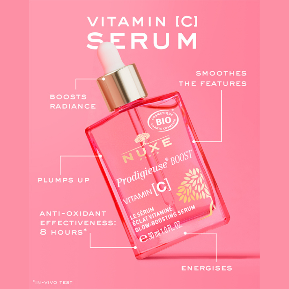 Give your skin the glow boost it deserves with Nuxe Prodigieuse Boost Glow Boosting Serum, a certified organic treatment that targets the very first signs of ageing with powerful stabilised Vitamin C. Just 3 precious drops are all you need to transform your skin - this lightweight serum works beautifully to boost radiance and freshness, making sure your skin looks luminous and feels revitalised from the very first use.