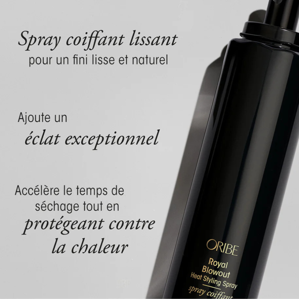 - Spray Oribe Royal Blowout evenly through damp hair from mid-lengths to ends.