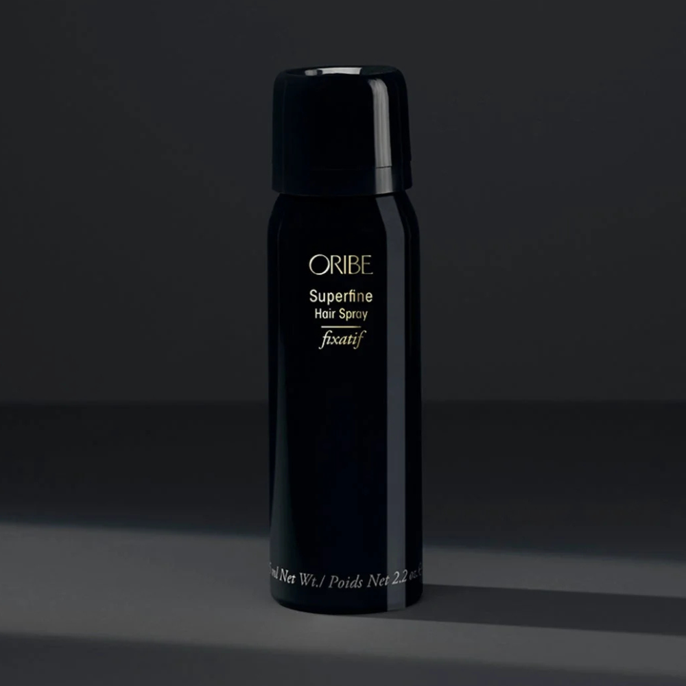 - Hold Oribe Superfine Hair Spray 8-10 inches away from finished hair.