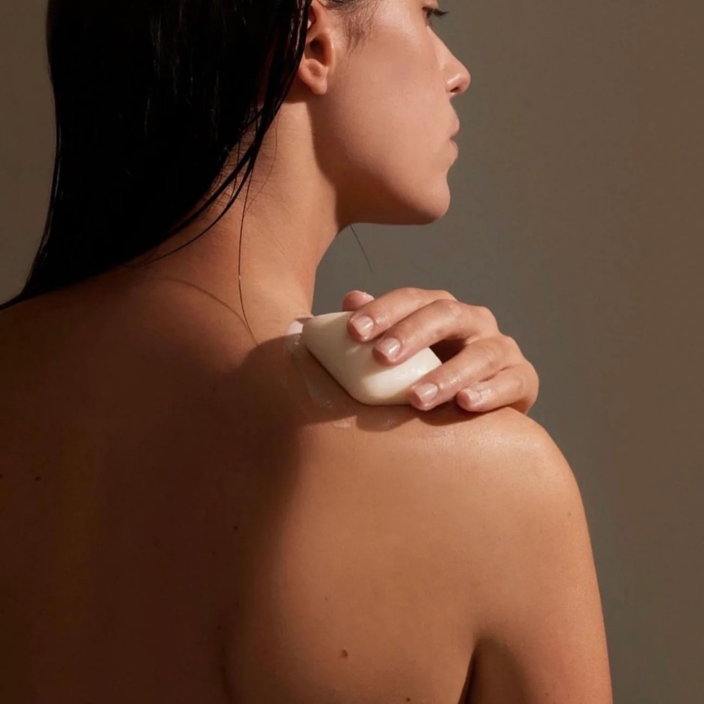 1. Wet the cleansing bar and work between palms to create a light foam.