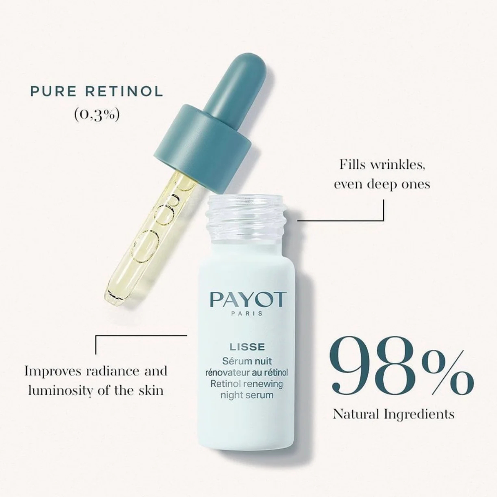 Make Payot Lisse Retinol Renewing Night Serum part of your evening ritual!