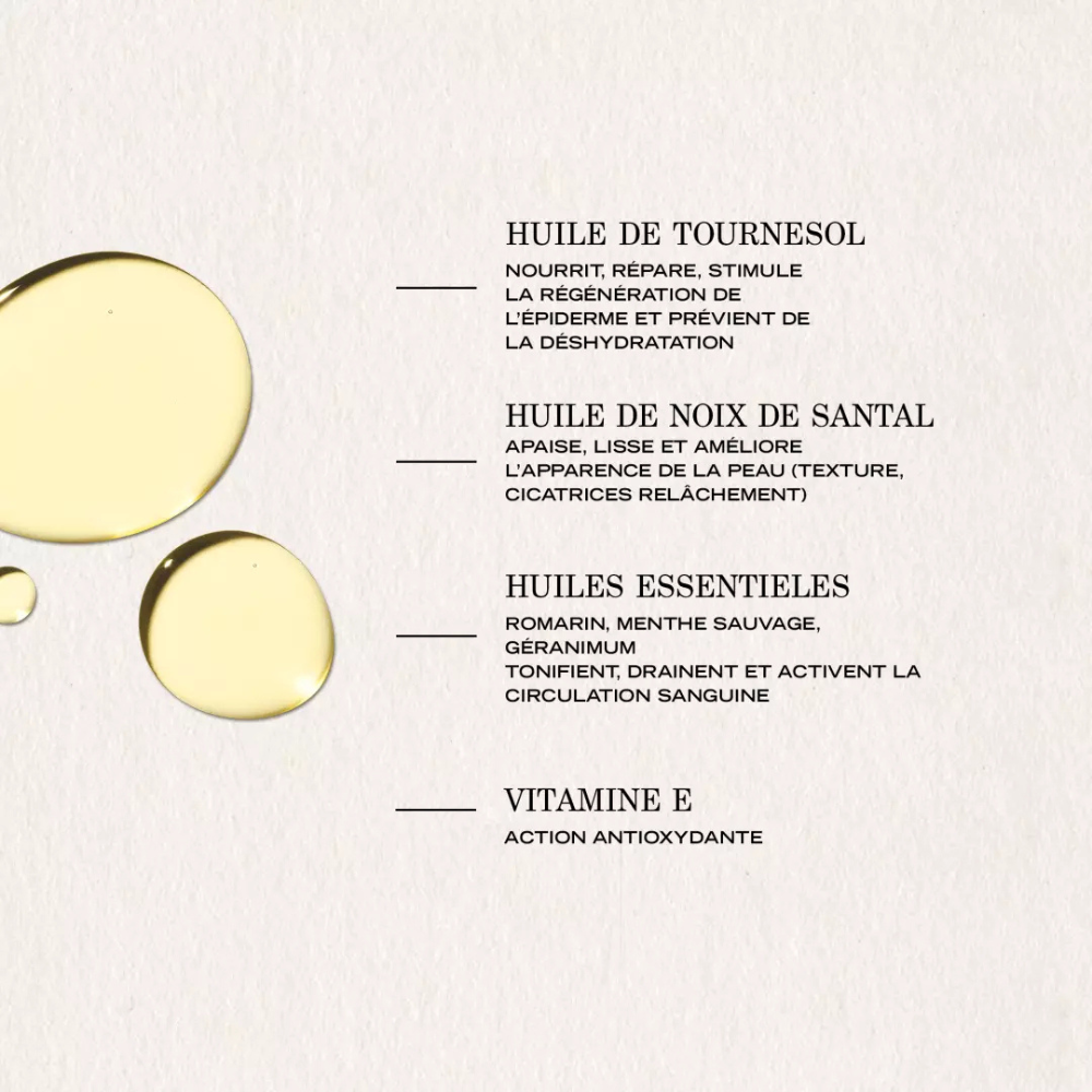 Payot Rituel Douceur Toning Body Oil is a luxurious body treatment formulated to help tone and improve skin elasticity whilst targeting the appearance of stretch marks and cellulite. This nourishing oil combines sunflower oil and sandalwood nut oil with a powerful blend of essential oils including rosemary, mint, and geranium, enhanced with vitamin E to naturally boost skin.