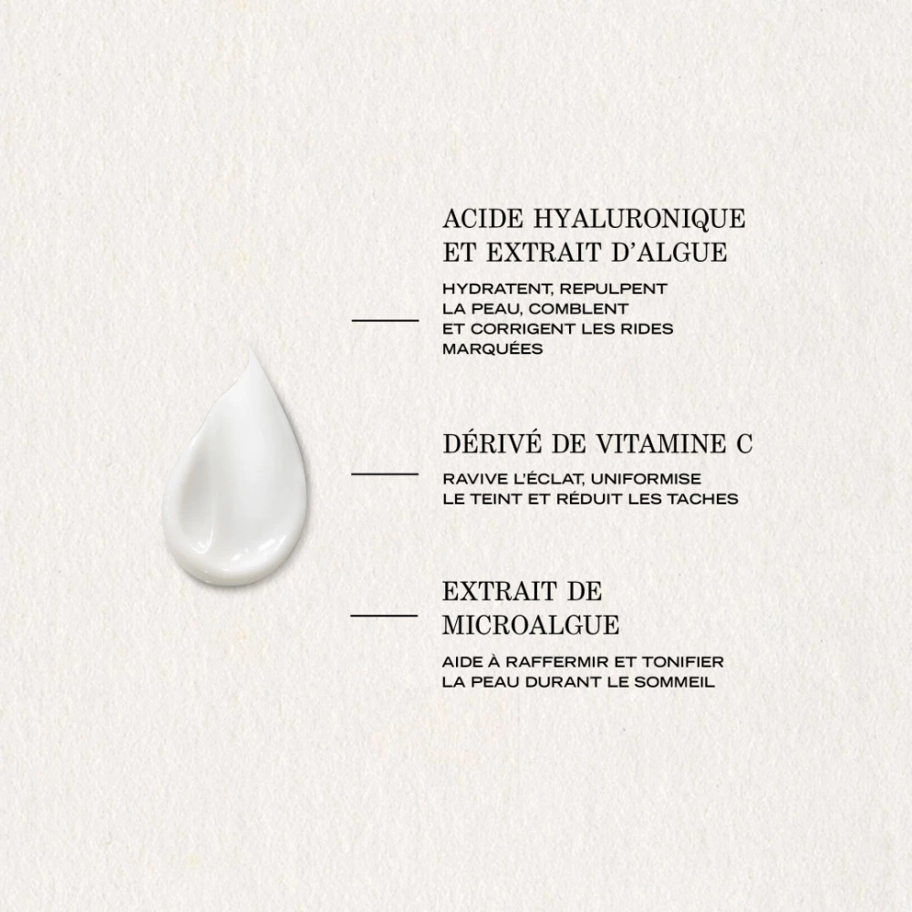 The innovative formula features a dual-action hyaluronic acid complex that deeply hydrates while supporting skin's natural defence mechanisms against daily stressors. Combined with a stable vitamin C derivative, it helps to brighten and even skin tone while you sleep.