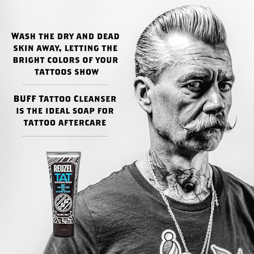 Discover the transformative power of Reuzel TAT Buff Exfoliating Wash, your essential first step in tattoo care and maintenance. This 100ml exfoliating wash is designed specifically to keep your tattooed skin looking vibrant and detailed, just like the day it was inked.