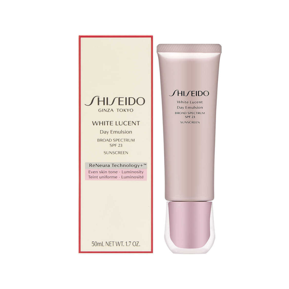 Shiseido White Lucent Day Emulsion SPF23 is a smooth emulsion designed to brighten skin, visibly diminish dark spots and unevenness, and smooth lines while protecting against dryness and UV rays.