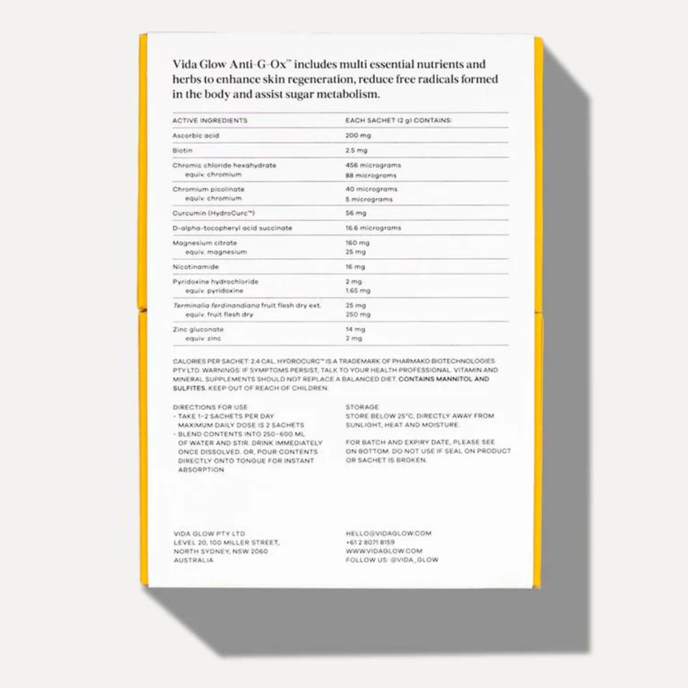 Vida Glow Anti-G-Ox is available in: 30 x 2g Sachets