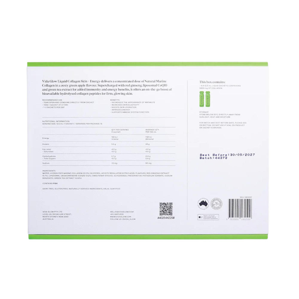 Vida Glow Liquid Collagen Skin + Energy Green Apple 15 x 12.5ml Sachets