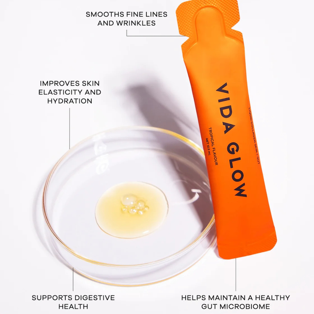 Make Vida Glow Collagen Liquid Advance part of your daily ritual for firmer skin and gut health support!