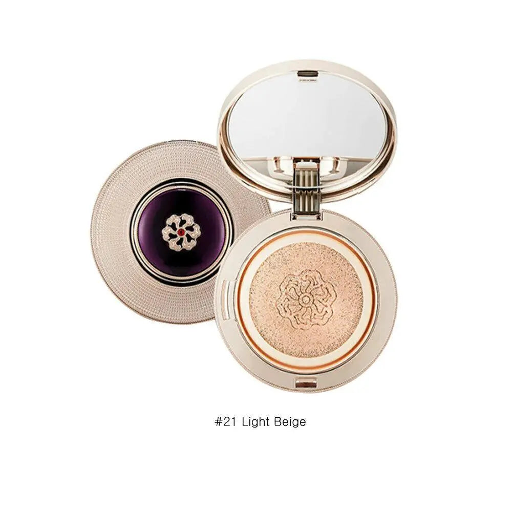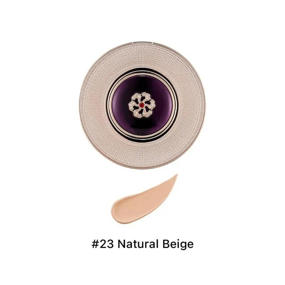 Water, Triethylhexanoin, Cyclopentasiloxane, Phenyl Trimethicone, Titanium Dioxide, Diphenylsiloxy Phenyl Trimethicone, Glycerin, Butylene Glycol Dicaprylate/Dicaprate, Dipentaerythrityl Hexa C5-9 Acid Esters, Phenylbenzimidazole Sulfonic Acid, Cetyl PEG/PPG-10/1 Dimethicone, Dimethicone, Magnesium/Potassium/Silicon/Fluoride/Hydroxide/Oxide, Niacinamide, Trimethylsiloxysilicate, Tromethamine, 1,2 Hexanediol, Panthenol, Sorbitan Sesquioleate, Alumina, Disteardimonium Hectorite, PEG-30 Dipolyhydroxystearate, Sodium Chloride, Zinc Stearate, Dimethicone/Polyglycerin-3 Crosspolymer, Dimethicone/PEG-10/15 Crosspolymer, Aluminum Hydroxide, Stearic Acid, Synthetic Fluorphlogopite, Distearyldimonium Chloride, Butylene Glycol, Palmitoyl Proline, Triethoxysilyethyl Polydimethylsiloxyethyl Hexyl Dimethicone, Adenosine, Methylpropnaediol, Triethoxycaprylylsilane, Magnesium Palmitoyl Glutamate, Sodium Palmitoyl Sarcosinate, Dipropylene Glycol, Palmitic Acid, Biosaccharide Gum-1, Sodium Citrate, Tin Oxide, Phaseolus Radiatus Seed Extract, Trichosanthes Kirilowii Root Extract, Panax Ginseng Root Extract, Gold, Cnidium Officinale Root Extract, Poria Cocos Sclerotium Extract, Tocopherol, Polygonum Multiflorum Root Extract, Ethylhexylglycerin, Lycium Chinense Fruit Extract, Angelica Gigas Extract, Cuscuta Japonica Seed Extract, Angelica Tenuissima Root Extract, Carthamus Tinctorius (Safflower) Flower Extract, Carthamus Tinctorius (Safflower) Seed Extract, Paeonia Suffruticosa Branch/Flower/Leaf Extract, Paeonia Suffruticosa Root Extract, Pentaerythrityl Tetra-Di-T-Butyl Hydroxyhydrocinnamate, Ceratonia Siliqua 9Carob) Fruit Extract, Phellinus Linteus Extract, Tuber Magnatum Extract, Velvet Extract, Rehmannia Glutinosa Root Extract, Ganoderma Lucidium (Mushroom) Extract, Platycodon Grandiflorus Root Extract, Fragrance, Titanium Dioxide (CI 77891), Iron Oxides (CI 77492), Iron Oxides (CI 77491), Iron Oxides (CI 77499)
